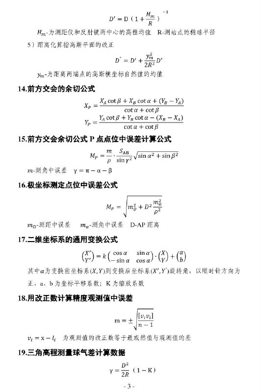 中国矿业大学大地测量专业研究生考试专业课常用公式(3)