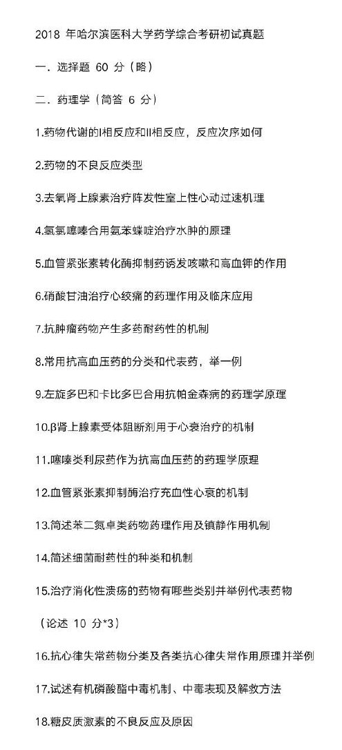 2018年哈尔滨医科大学药学综合初试真题