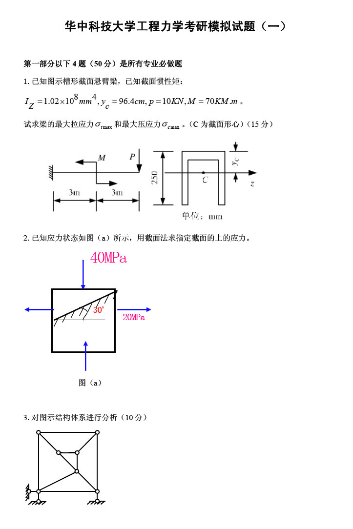 华中科技大学工程力学考研模拟试题(一)