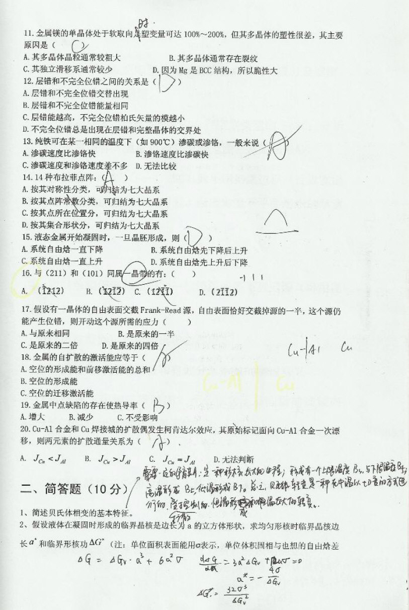 东南大学材科科学基础考研模拟题练习题带答案(2)