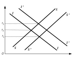 利率r的变化取决于投资流量与储蓄流量的均衡:投资I不变,储蓄S增加,均衡利率水平下降;储蓄不变,投资增加,则有均衡利率的上升。