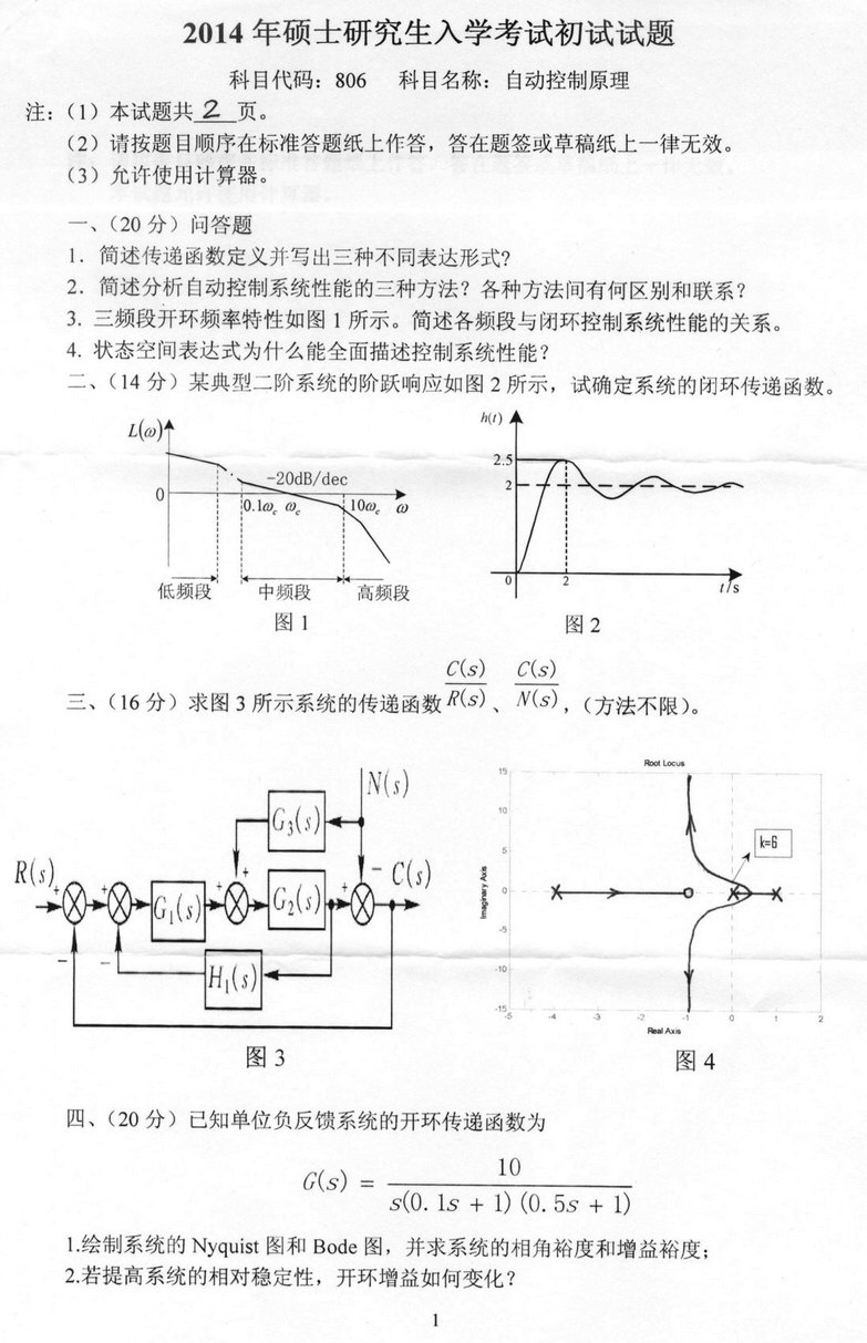 燕山大学2014年自动控制原理考研真题