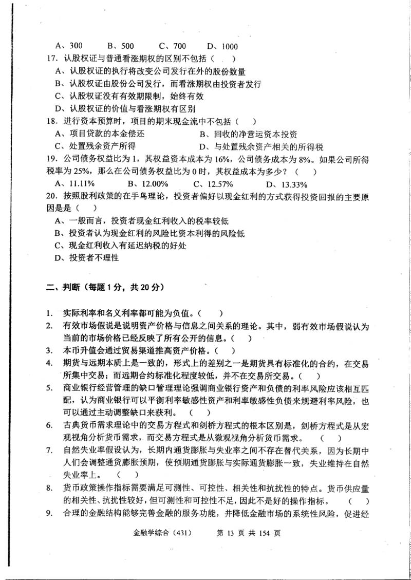 中央财经大学2015-2011金融学综合431考研真题(17)