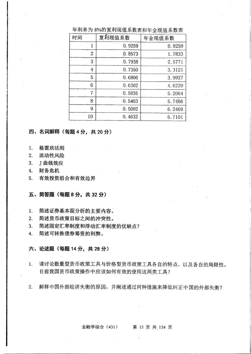 中央财经大学2015-2011金融学综合431考研真题(19)