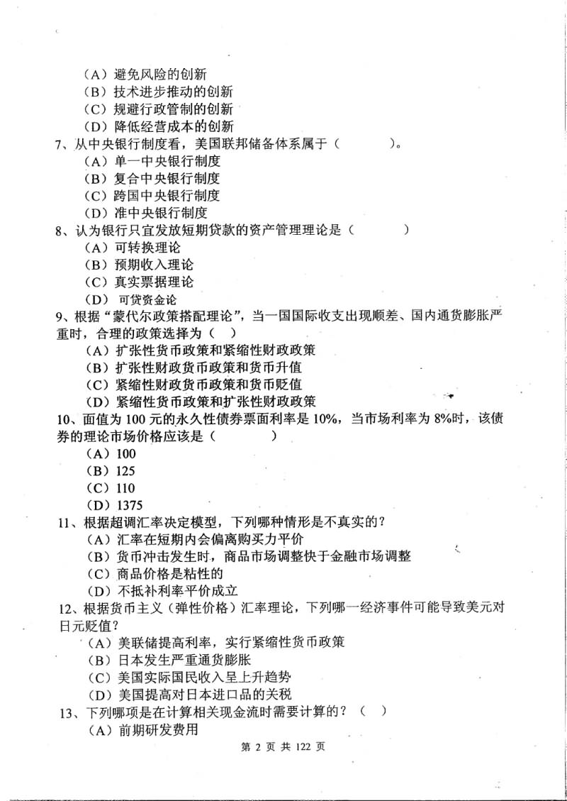 中央财经大学2015-2011金融学综合431考研真题(21)