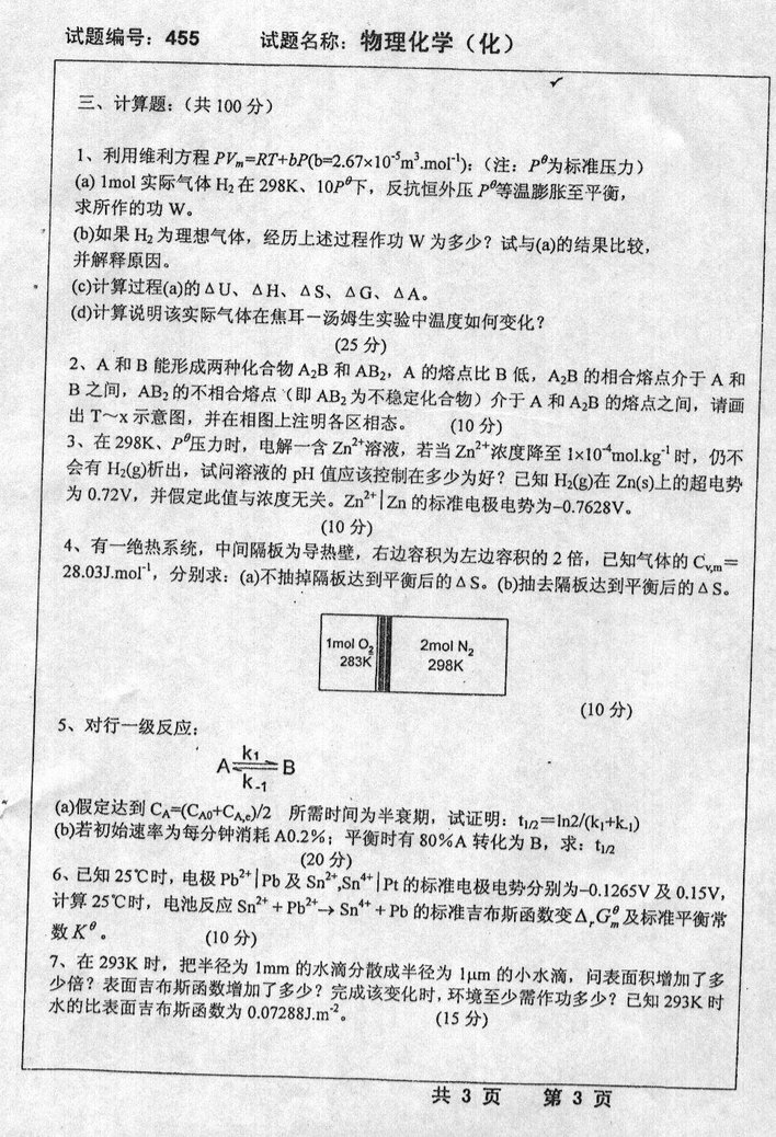 东南大学1998-2013年的(除了2010)物理化学考研真题(13)
