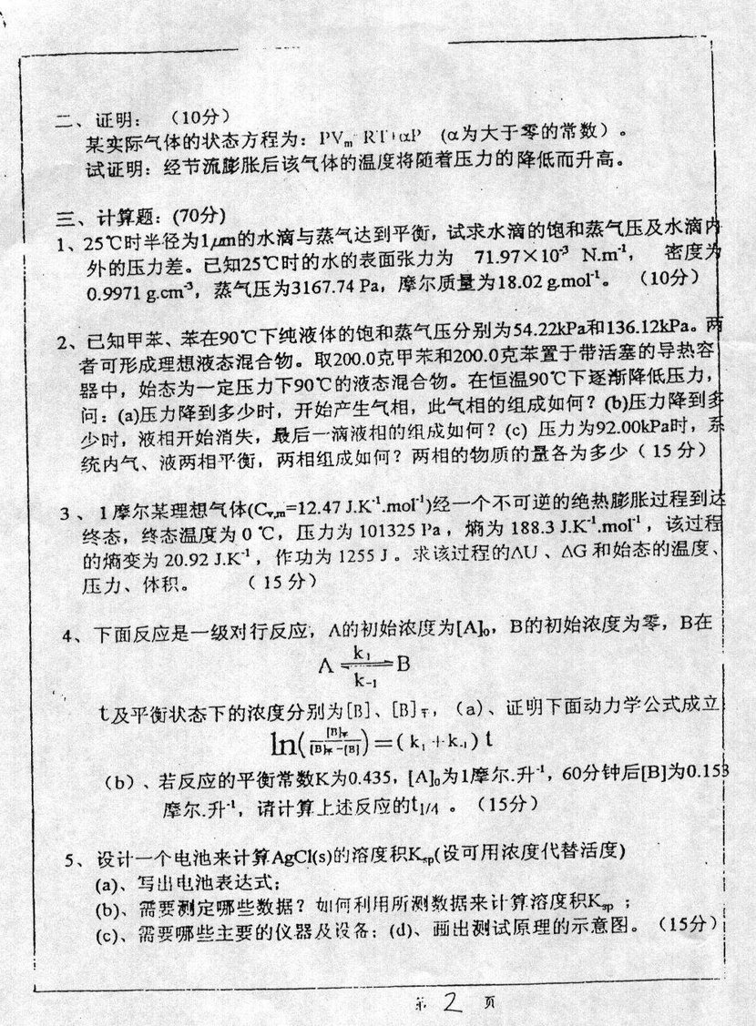 东南大学1998-2013年的(除了2010)物理化学考研真题(2)