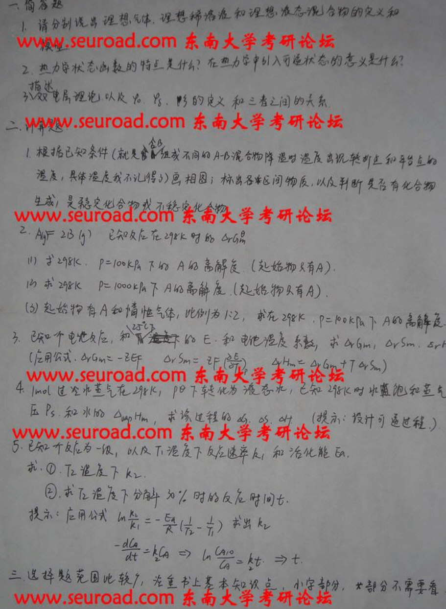 东南大学1998-2013年的(除了2010)物理化学考研真题(27)