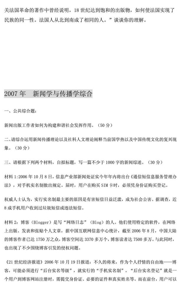 1、改革开放以来我国新闻事业发展的三次跨越。媒介集团化的成因、机制及其影响。  2、简述我国都市报现象的历史与现实。  3、人类新闻传播活动的发展阶段(口头传播、文字传播、印刷传播、电子传播、网络传播)及各个阶段的符号特征。  4、世界范围内近代报纸产生的标志及其时代背景。  5、《星法院》的存废以及封 ...