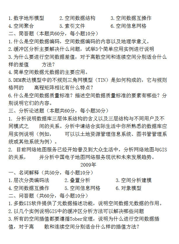 • 南京师范大学历年地理信息系统考研专业课真题汇总