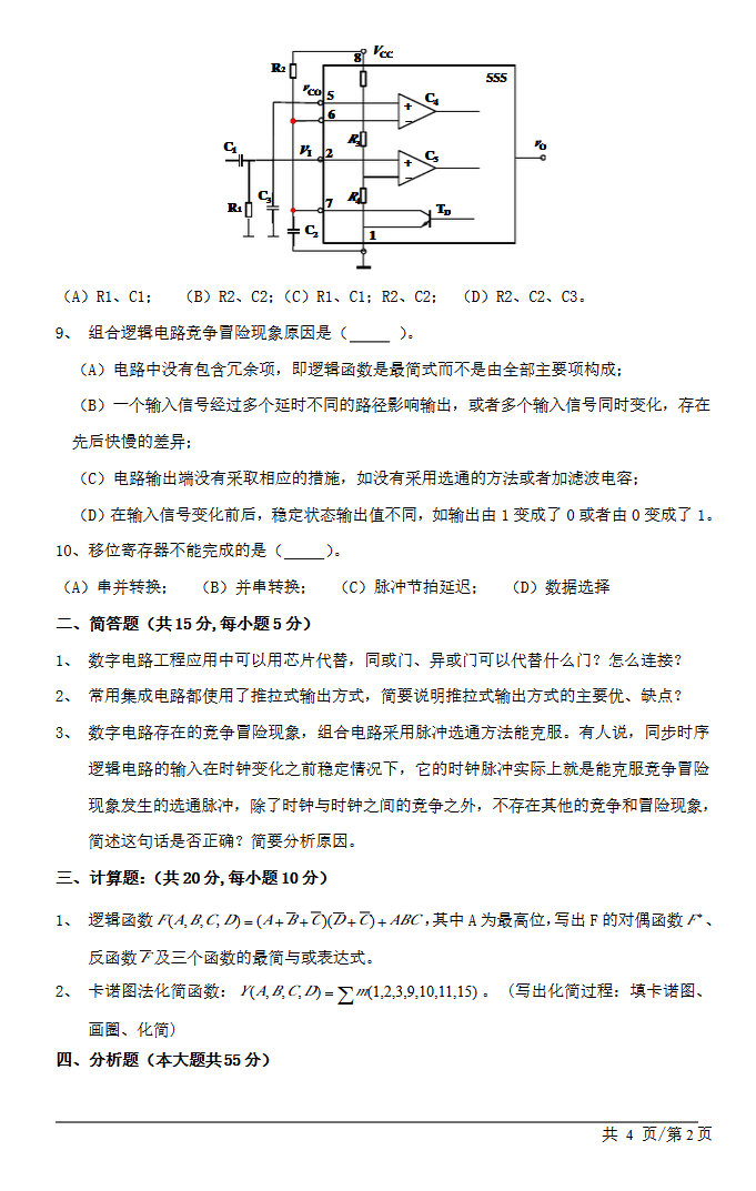 安徽大学2015-2016年数字电路与逻辑设计初试试题(2)