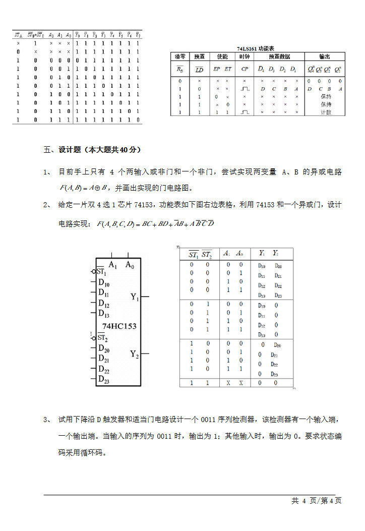 安徽大学2015-2016年数字电路与逻辑设计初试试题(4)