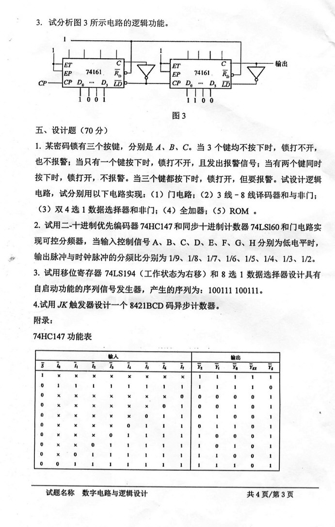 安徽大学2015-2016年数字电路与逻辑设计初试试题(7)