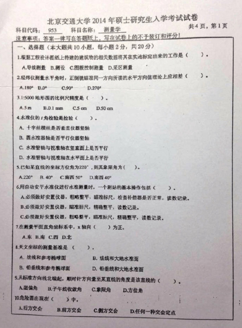 专业课考研经验 本站小编 FreeKaoyan 2018-01-23北京交通大学考研历年真题专业课 通信系统原理2004年试题考试科目:405通信系统原理注意事项:答案一律写在答题纸上,写在试卷上的不予装订和评分!一 填空(45分),将答案写在答题纸上,表明对应题号和空格编号1、通信系统的复用方式有(A)、(B)、(C)、(D)、和(E)等。2、两个随机过程X(t) ...