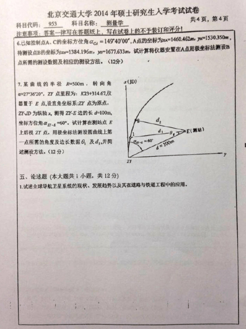 北京交通大学2015-2014测量学考研真题(4)