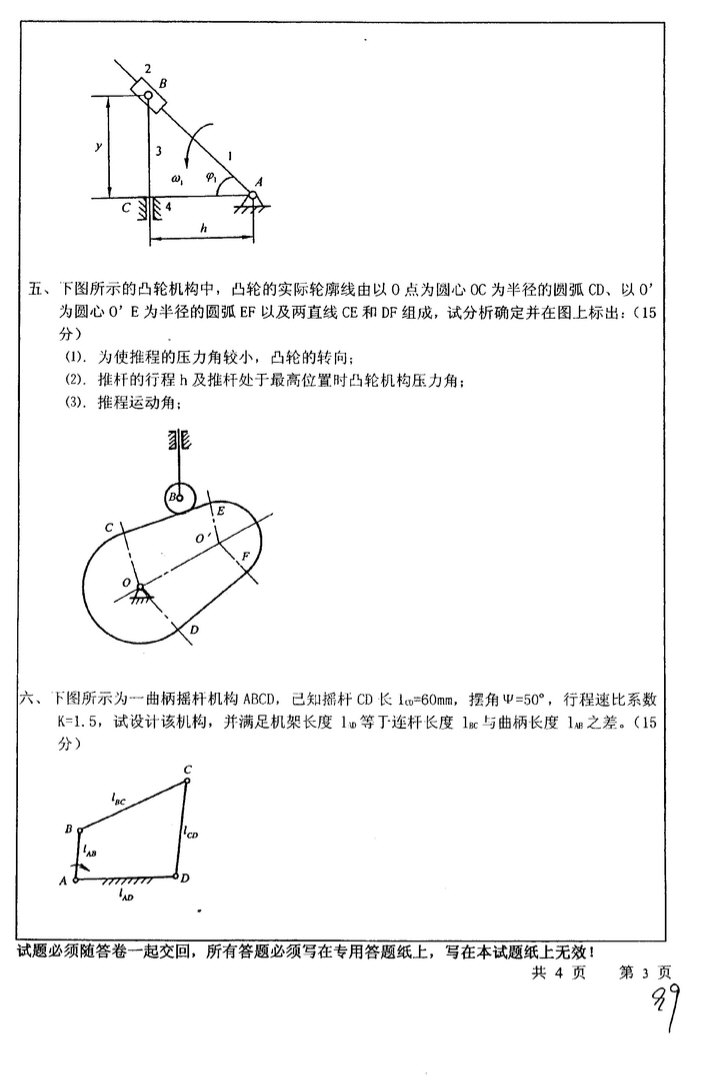 专业课考研资料 本站小编 免费考研网 2018-08-242016年合肥工业大学机械原理考研真题回忆