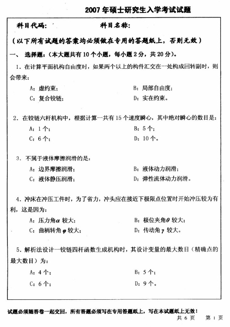 专业课考研资料 本站小编 免费考研网 2018-03-242008同济大学机械原理考研试卷