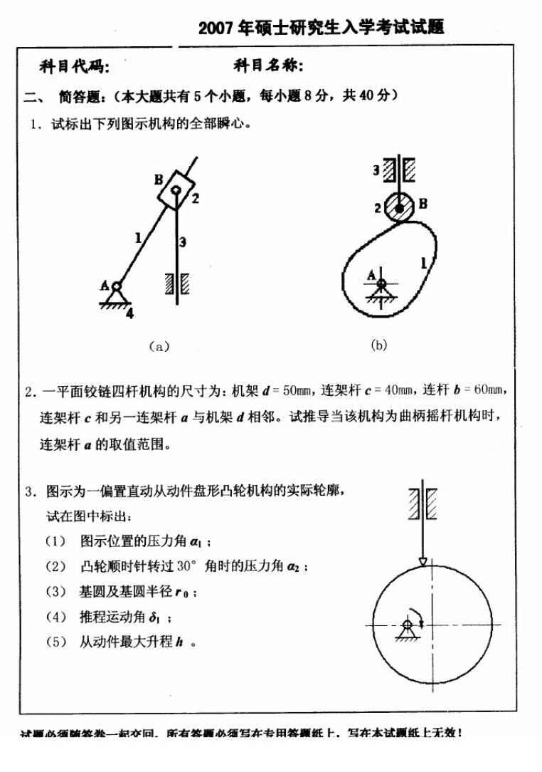 专业课考研资料 本站小编 免费考研网 2018-03-242008同济大学机械原理考研试卷