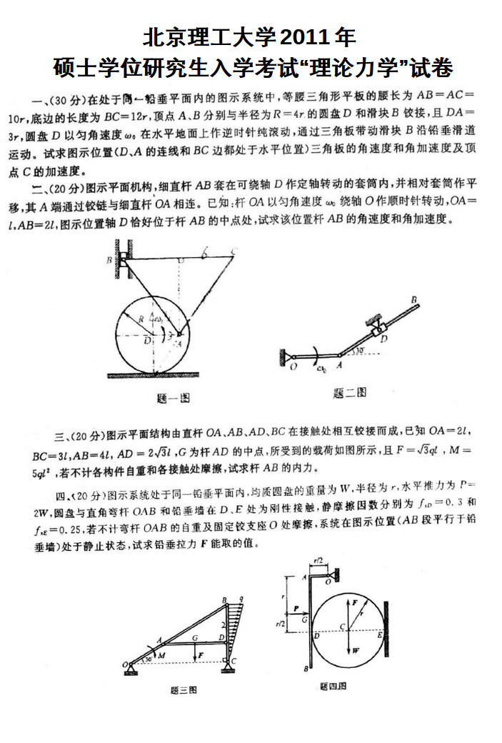 专业课考研经验 本站小编 FreeKaoyan 2018-01-23浙江大学2010年831理论力学考研试题(回忆版)