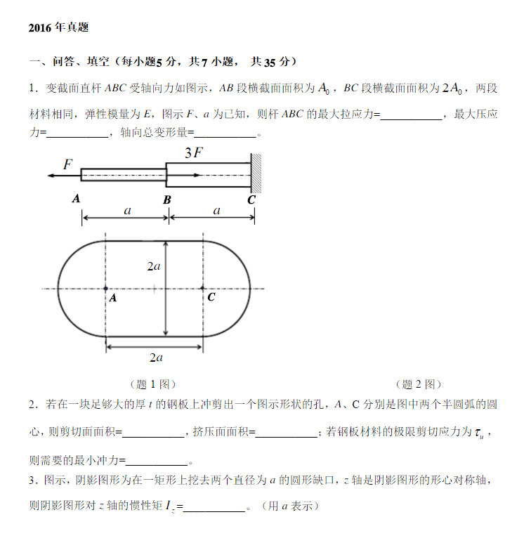 2010年西北工业大学841材料力学考研试题(回忆版) ...