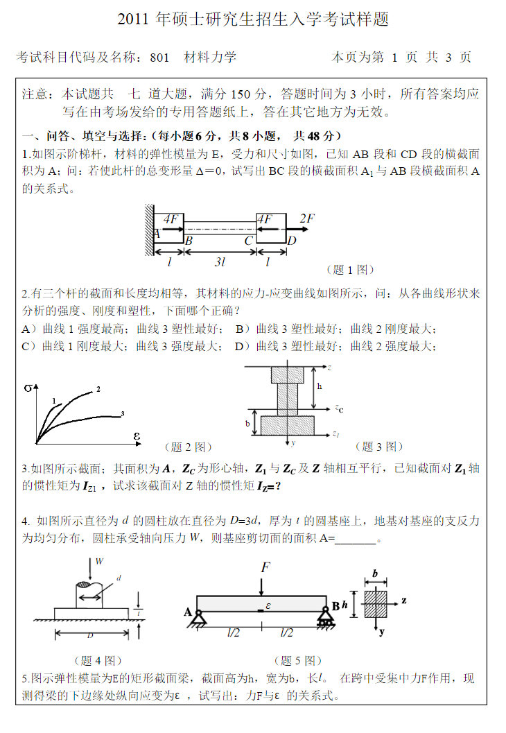 2010年西北工业大学841材料力学考研试题(回忆版) ...