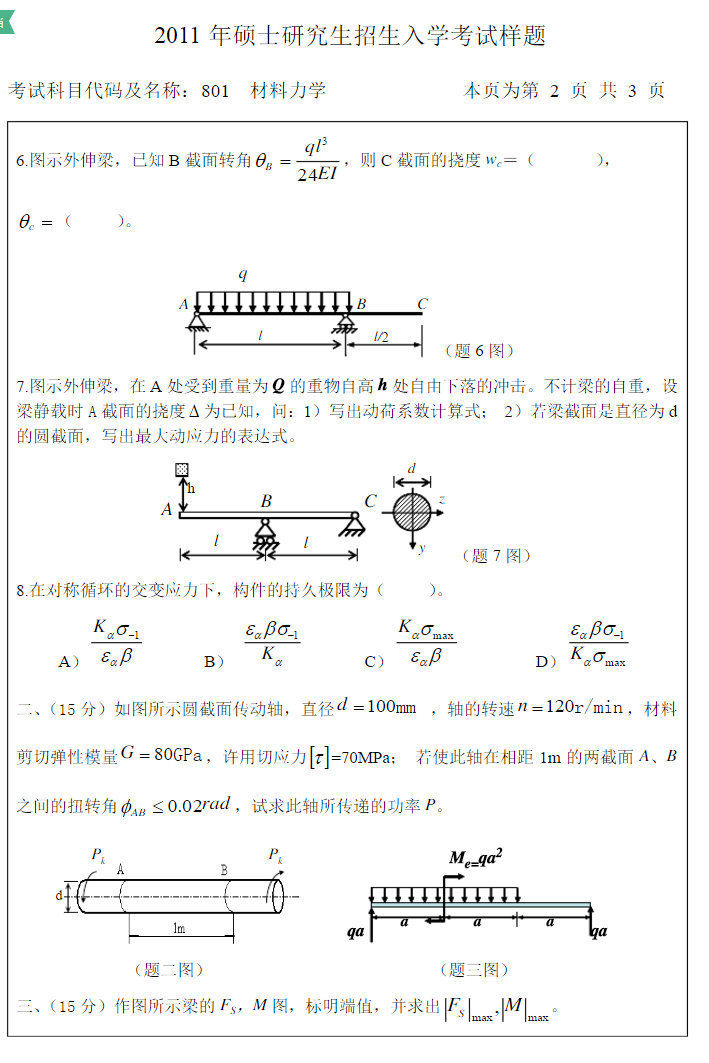 2011大连交通大学材料力学考研真题(2)
