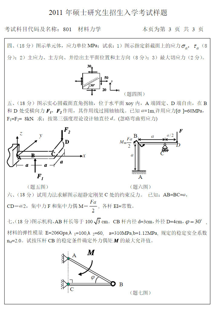 2010年西北工业大学841材料力学考研试题(回忆版) ...