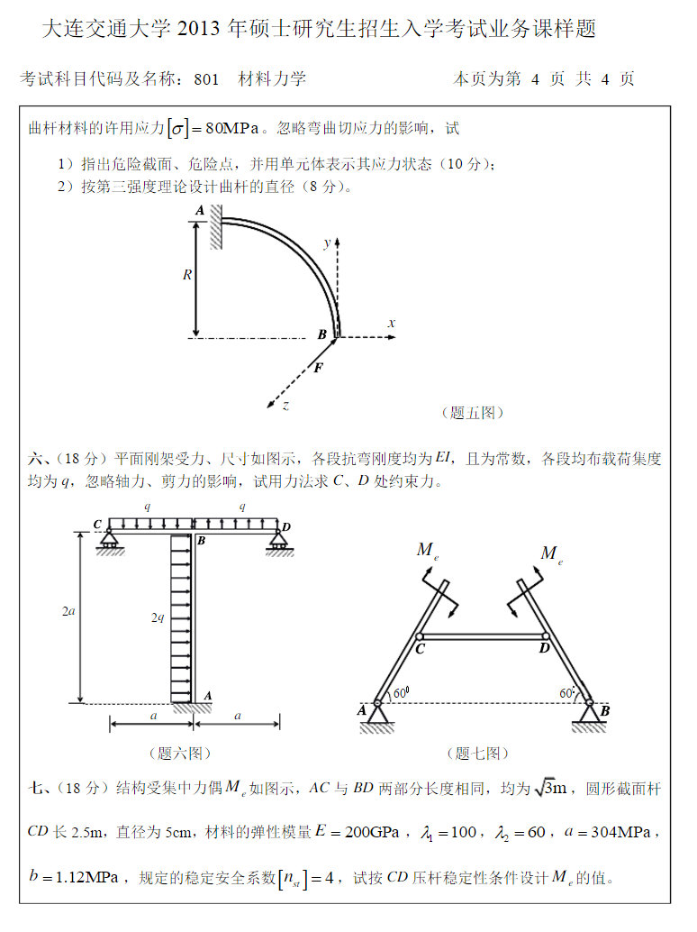 2013大连交通大学材料力学考研真题(4)