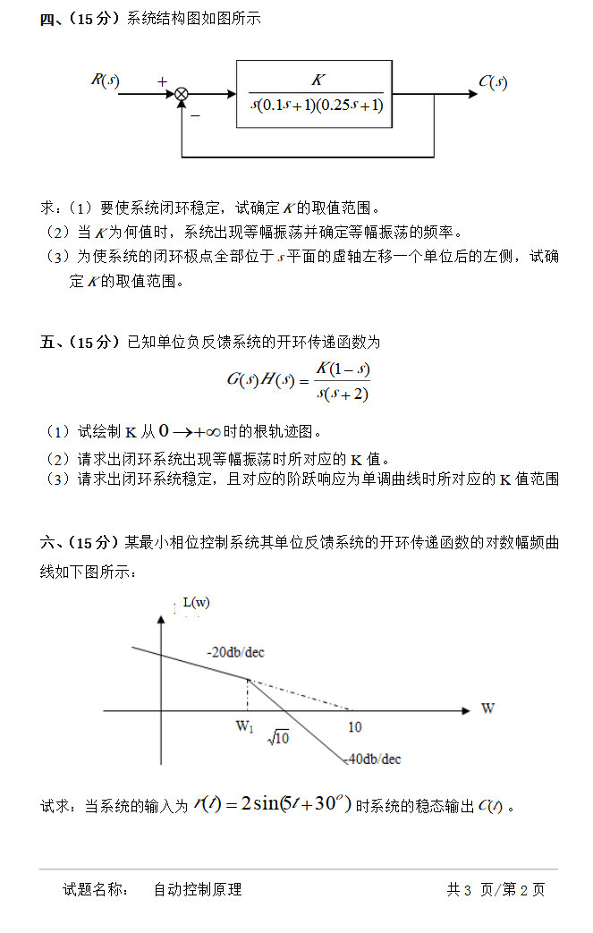 安徽大学2013年自动控制原理820考研真题B卷(2)