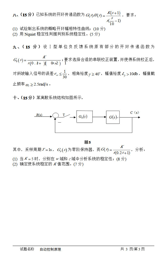安徽大学2015年自动控制原理820考研真题B卷(3)