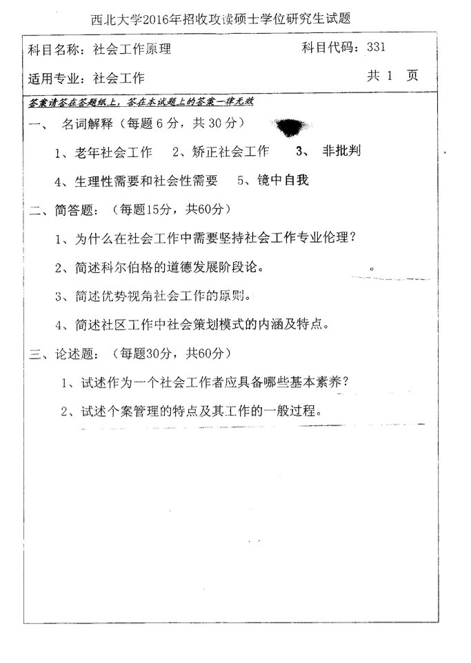 考研复试信息 本站小编 免费考研网 2018-02-06上午:341社会工作原理一、名词解释(每题8分,共40分)1、接纳2、社会福利3、社会工作实务4、社会问题5、越轨二、简答题(不太记得了,貌似有5题好像)1、 2、社会制度的功能3、中国的社会组织类型及特征 三、论述题(也太不记得了,大家补充)1、下午:441社会工作实务一、试以人为本和以社区为本基 ...