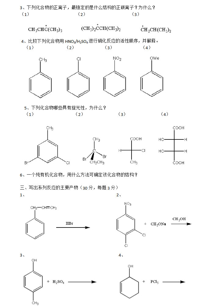 1比较吡啶,苯胺,二甲胺,吡咯的碱性,解释为什么? 2.解释立体选择性反应,立体专一性反应和不对称合成的概念;怎样衡量不对称合成的效率;用HCl处理100%光学活性的S-2-甲基-1-丁醇得到100%光学活性的1-氯-2-甲基丁烷,为什么?3机理