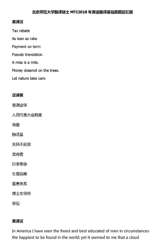 翻译硕士 本站小编 免费考研网 2018-08-21I. Translation the following words and phrases into Chinese (共15分,每小题1.5分)1. a massive undertaking(1 分) 艰巨的任务2.graphic design (1 分)平面设计;图形设计3.world tour(1 分) 世界之旅;世界巡回赛;世界巡演4. spark off (1 分) 引起,激发;导致5. seismic change(1 分)重大的改变6. enduring c ...
