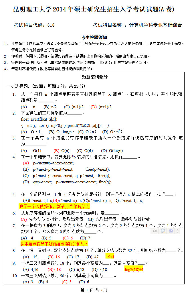 2014年研究生昆明理工大学计算机818考试题目和答案