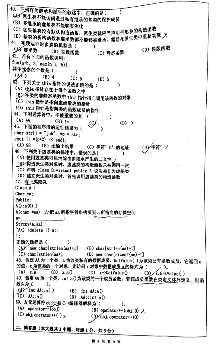 试卷:2016GR 全部 单项选择(38/43) 普通编程题(2/2) 附加改错题(0/2) 单项选择(120分) 1.(2分)在OSI参考模型中,实现路由功能的是 A. 会话层 B. 传输层 C. 网络层 D. 数据链路层 2.(2分)在TCP/IP协议栈中,提供无连接服务的传输层协议是 A. IP B. ICMP C. TCP D. UDP 3.(2分 ...