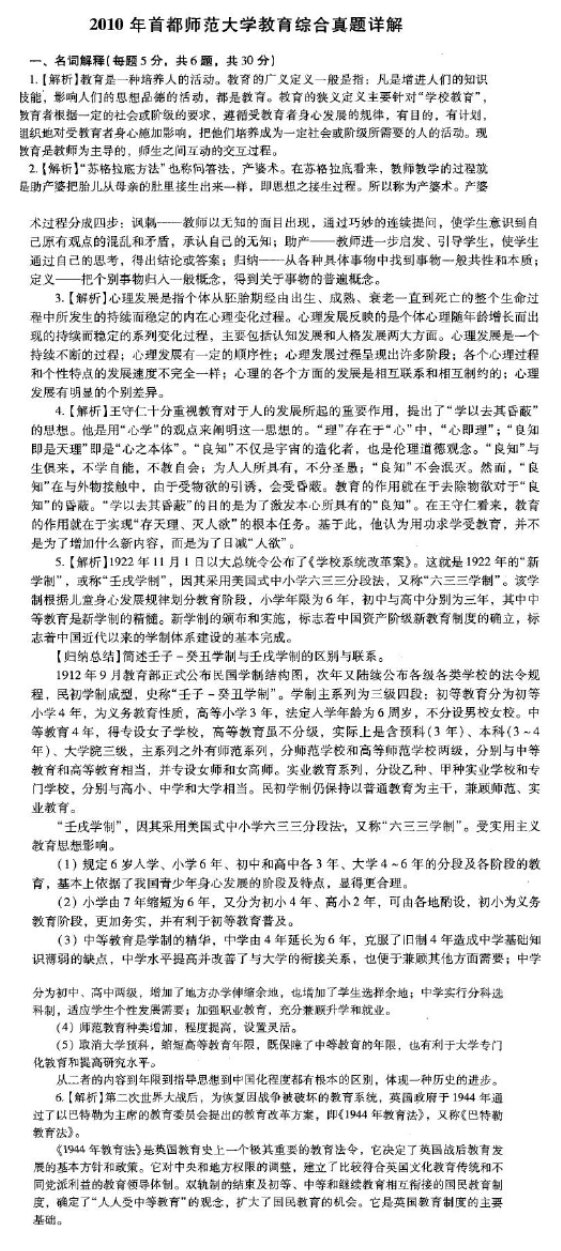 一、名词解释 1.教育 2.苏格拉底法 3.心理发展 4.“致良知” 5.1922年“新学制” 6.1944年《教育法》