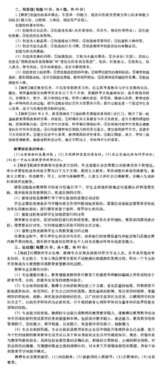 333真题 2011年 一、名词解释 1、课程设计 2、学校教育制度 3、班级上课制 4、大丈夫 5、《国防教育法》 6、学习迁移 二、简答 1、简要分析教学过程的性质 2、教育的政治功能 3、五育并举教育方针 4、实验教育学的主要观点 三、论述 1、对新课程改革目标的 ...