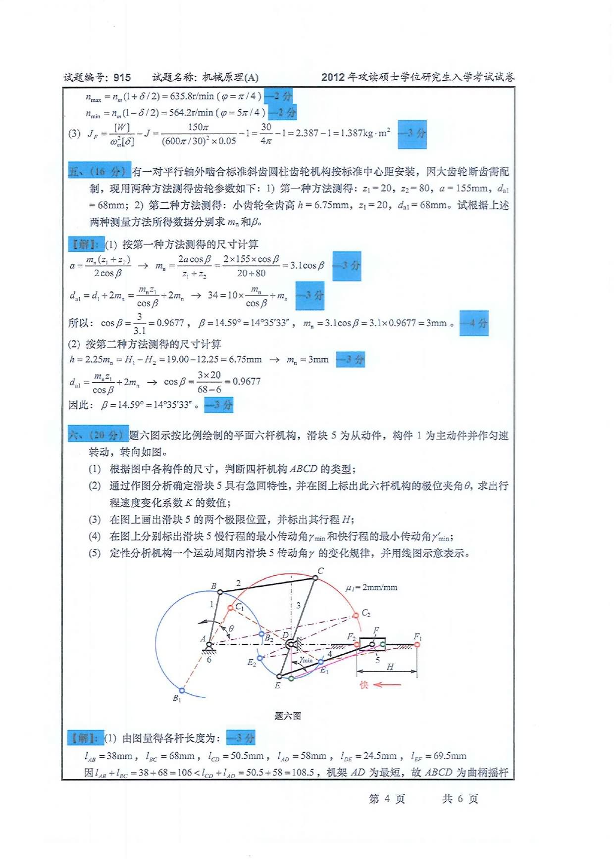 东南大学2011-2015机械原理915考研真题带详细答案(10)