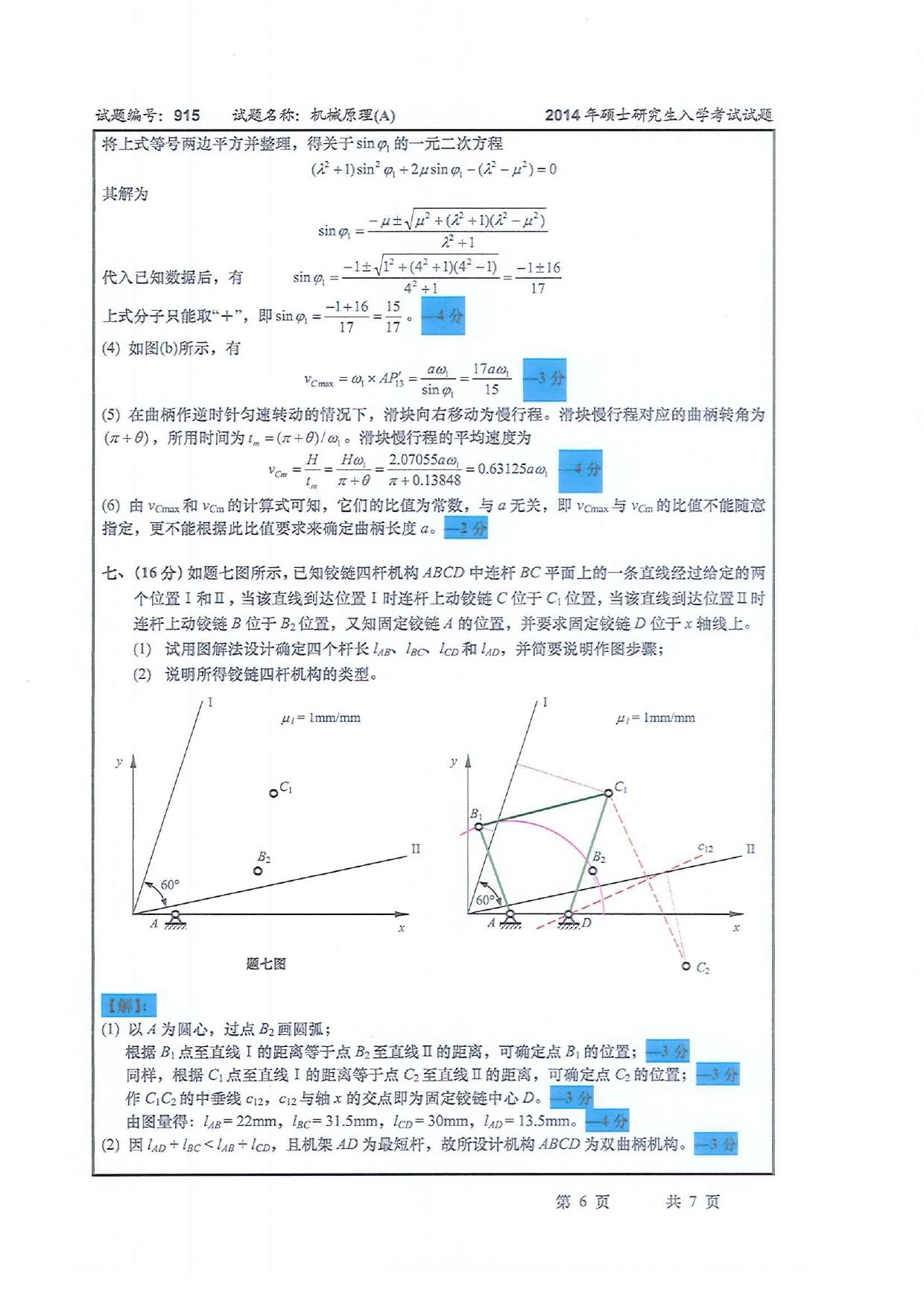专业课考研资料 本站小编 免费考研网 2018-08-242016年合肥工业大学机械原理考研真题回忆