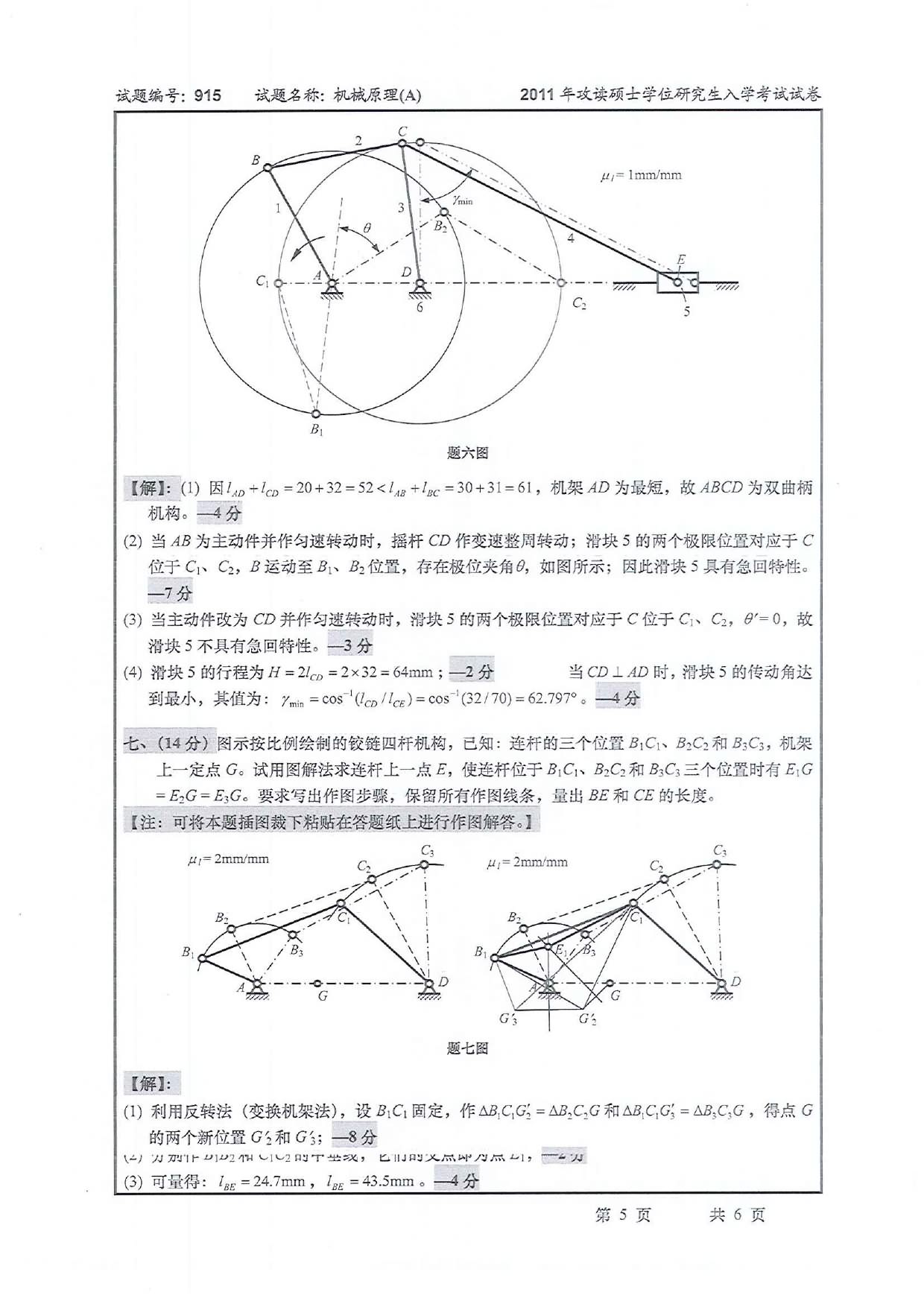 东南大学2011-2015机械原理915考研真题带详细答案(5)
