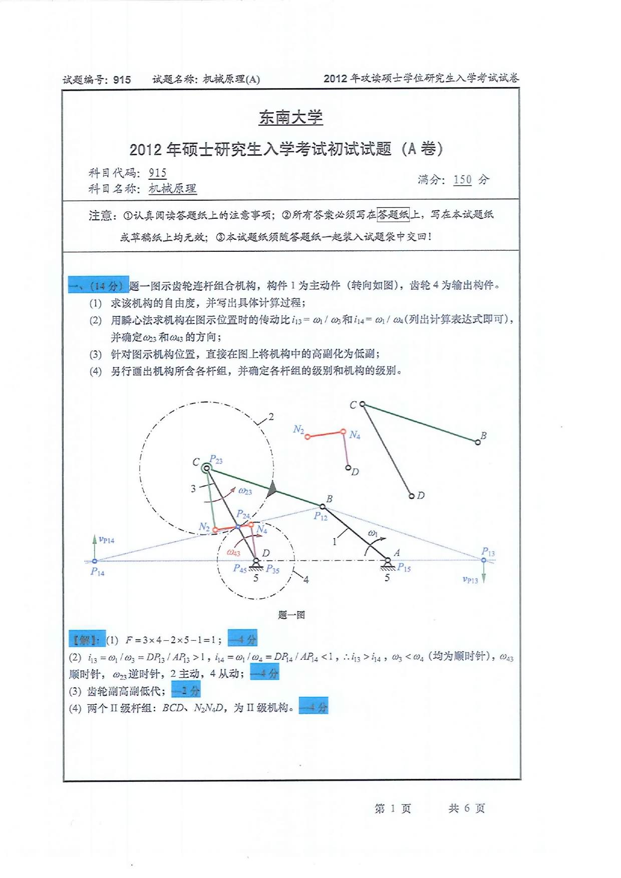 东南大学2011-2015机械原理915考研真题带详细答案(7)