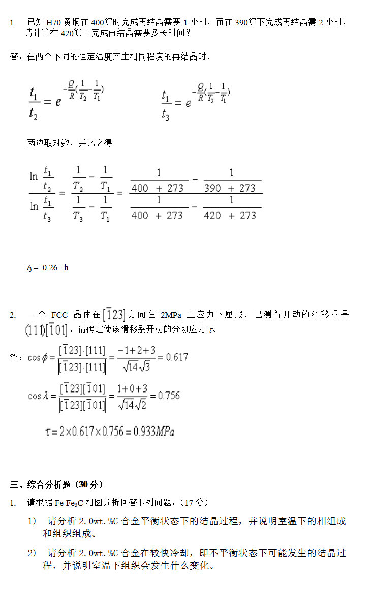 西北工业大学2008-2011材料科学基础考研试题与答案(3)
