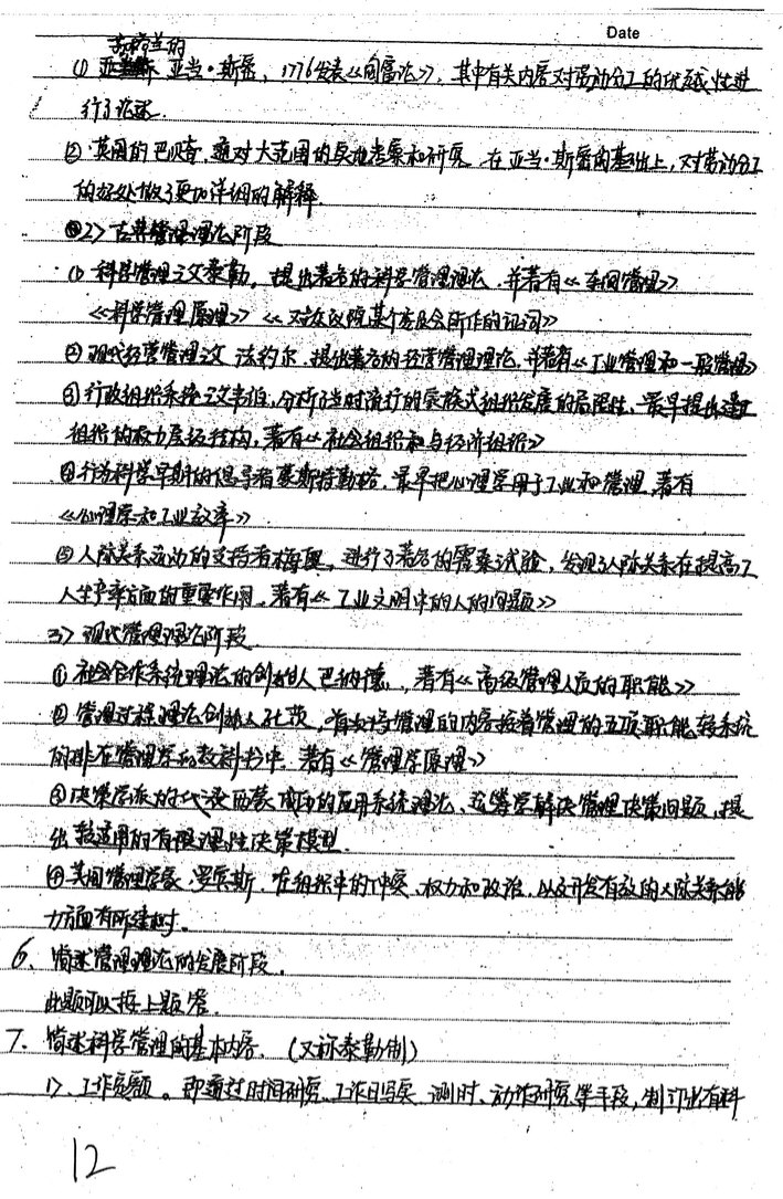 中国人民大学管理学考研辅导班-王利平管理学原理 计划、组织、领导、控制 2、4、6、8章是重点,尤其第4章,要花本科80%时间复习,1、3、5、7章非重点 第1章 管理的历史发展 自从有了人与人之间的社会生活,就有了管理的实践和经验总结,此时的管理被称为史前的管理。近代管理学,则是在自然科学发展到一定程度,伴随着 ...