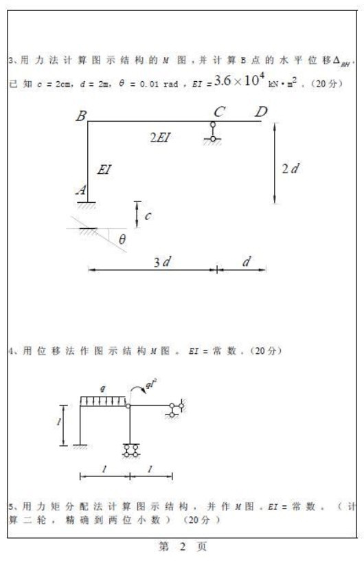 哈尔滨工业大学2009结构力学872考研真题(2)