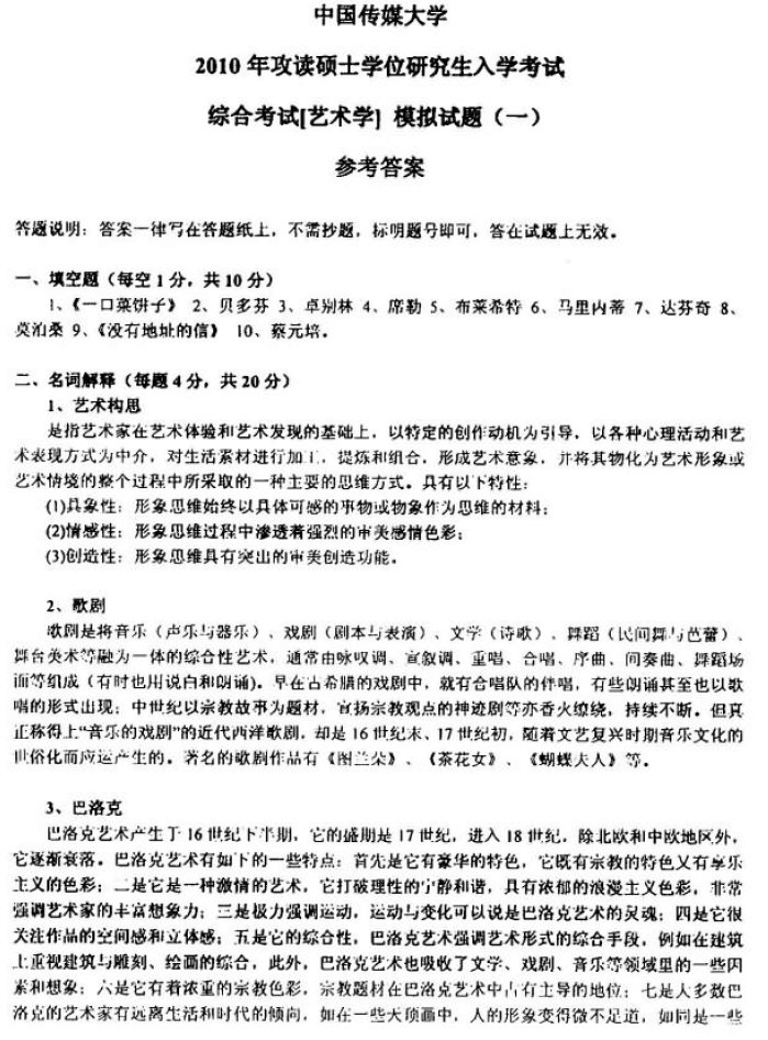 中国传媒大学综合考试【艺术学】最后三套题答案