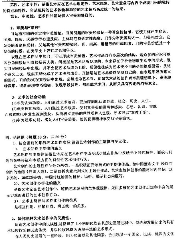 1.艺术四要素(2006年山东大学考题)
