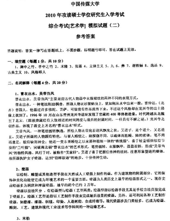 中国传媒大学综合考试【艺术学】最后三套题答案(4)