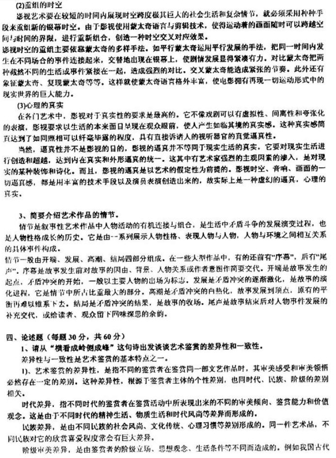 中国传媒大学综合考试【艺术学】最后三套题答案(6)