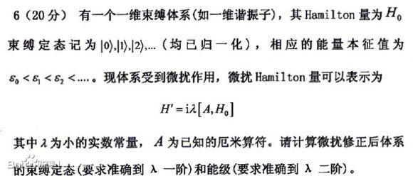 (2)根据物理问越要求的边界条件,选取符合物理边界条件的解.并且,要求这个解满足波函数的有限性、单值性和连续性三个标准条件.由此,可以得到使解满足物理边界条件和三个标准条件时所有可能取的本征值,称为本征值谱,亦即是体系的能谱。对于体系的束缚定态来说,能讲是分立的。再得出与本征值谱相应的正交归一化本征函数完备组。