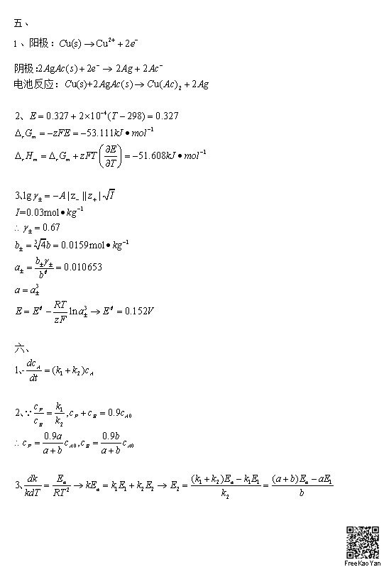 专业课考研资料 本站小编 免费考研网 2019-03-17一、 西安交通大学723物理化学考研真题